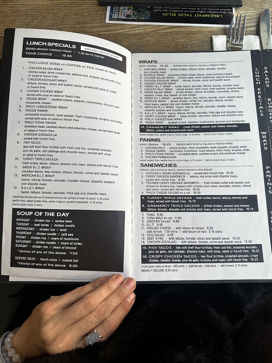 Gramercy Kitchen offers a diverse menu that caters to any craving you might have, from mouthwatering wraps to hearty burgers and delectable sweet dishes. Popular selections like the Italy Wrap #7 and the Mexican burger—both celebrated for their rich flavors and generous portions—are definitely not to be missed. The French Onion Soup, noted by customers for its perfect balance without overwhelming saltiness, is the ideal companion to any meal. And let's not forget about their brunch offerings; with the beloved mimosa tower being praised as "the best bargain in town," it's no wonder diners rave about their experiences here.